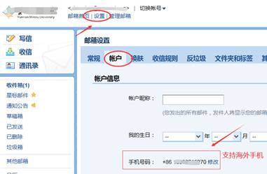 如果原邮箱绑定的手机需要更换成新手机,用户可以到邮箱网页版去修改手机号,修改的方法如下:网页版à设置à账号à账号信息